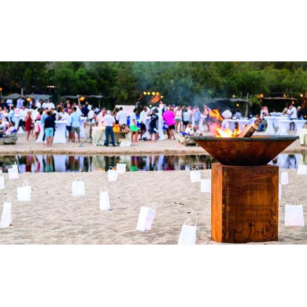 Prepare a healthy meal outside with this spherical fire bowl has a round wide, thick flat roasting plate that you use as teppanyaki. The roasting plate has different cooking temperatures. The centre of the plate is warmer as the outer sides so cooking is even easier and all ingredients can be served together.